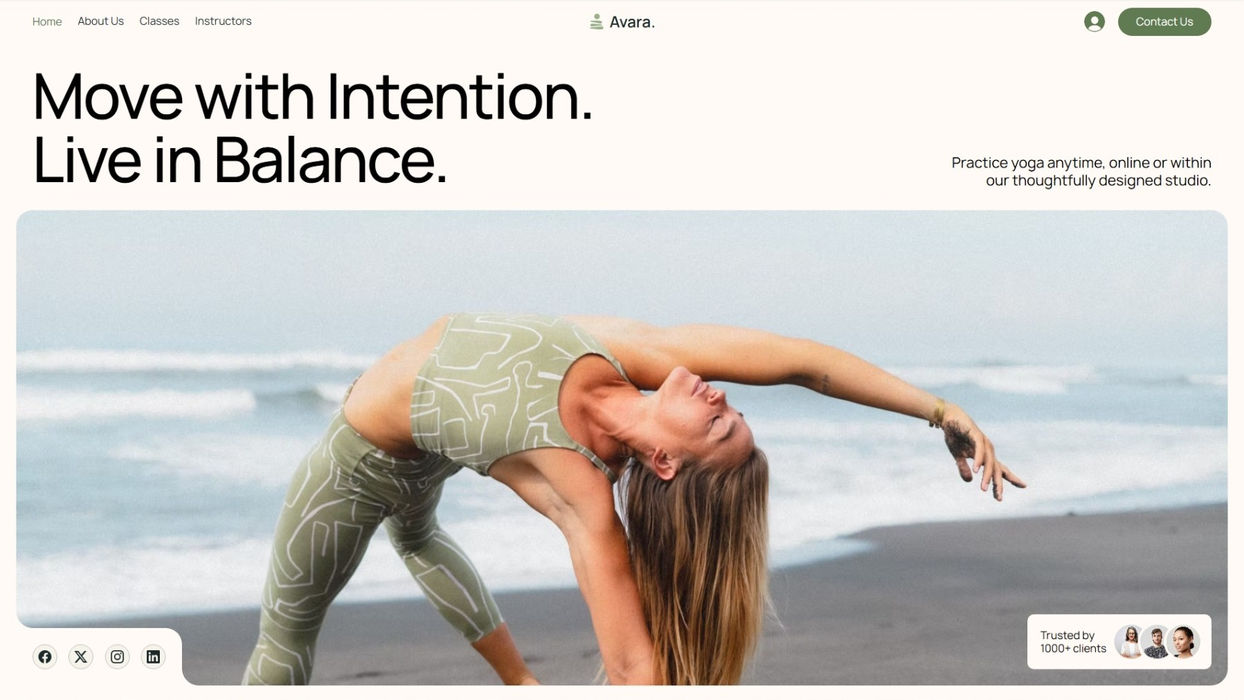Avara is a modern yoga studio website designed to create a calm and welcoming digital experience. Built to reflect balance and mindfulness, it features intuitive navigation, clear structure, and a design that encourages intentional living.